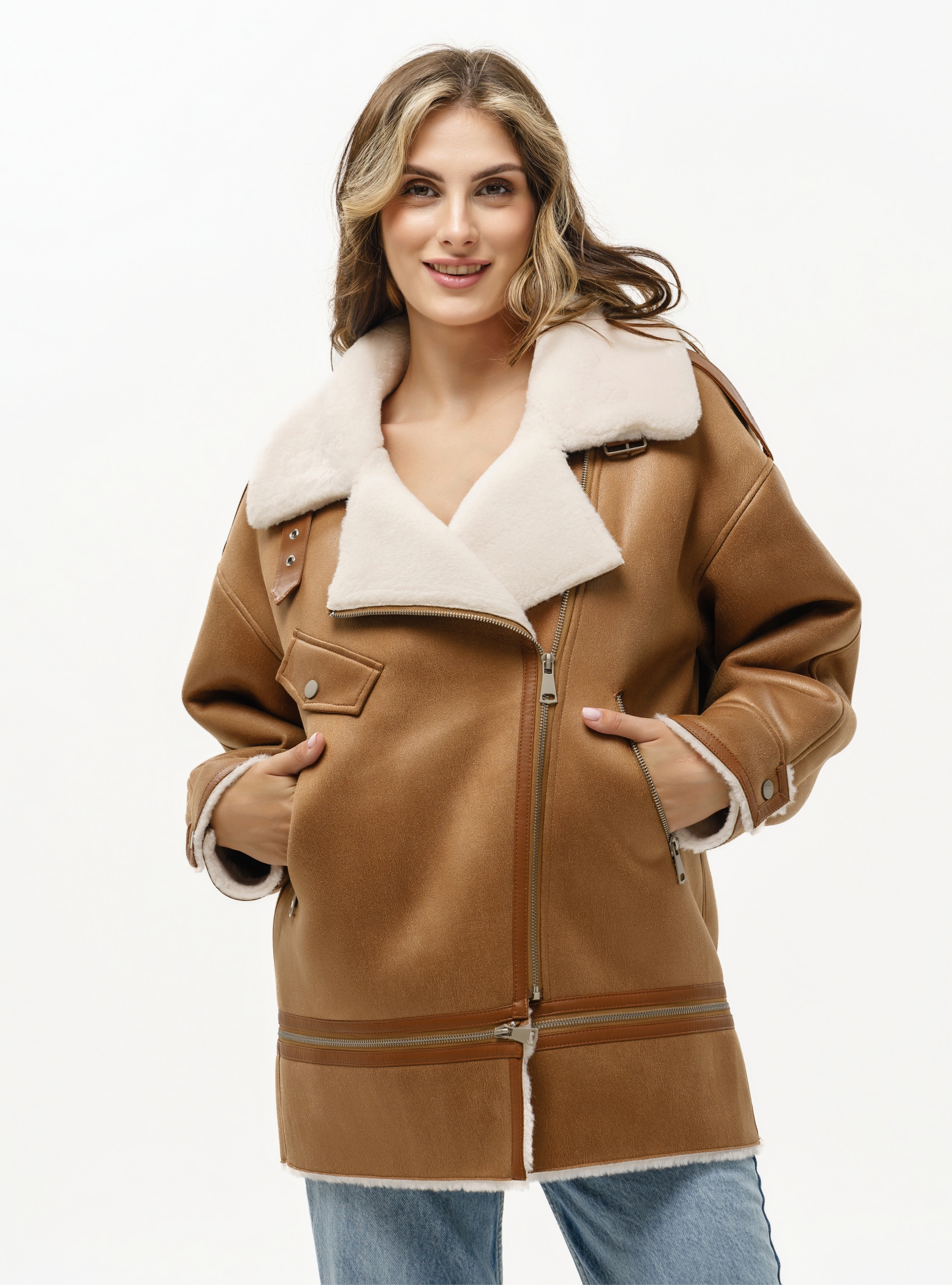 Эко дубленка ДН «Идэя» воротник коричневый цвета коричневый