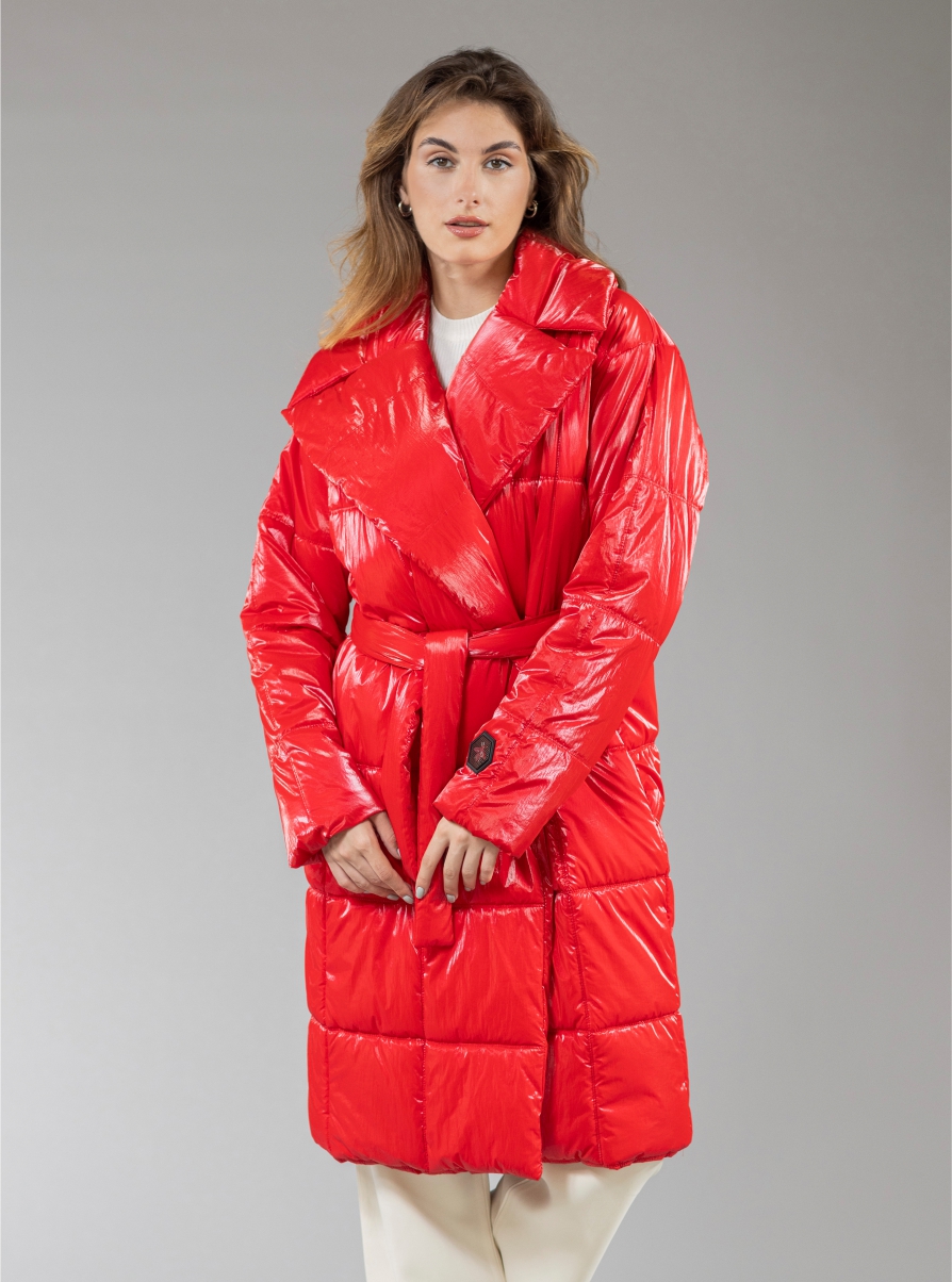 Стеганое пальто-халат средней длины, выполненное в ярком коралловом цвете с лаковым блеском.. Классический прямой крой с объёмным английским воротником в сочетании со столь необычным и притягивающим взгляд цветом не дадут вам остаться незамеченной. Уют, который вы ощутите в этом пальто-халате в холодное время года, сравним только с любимой домашней одеждой.Характеристики